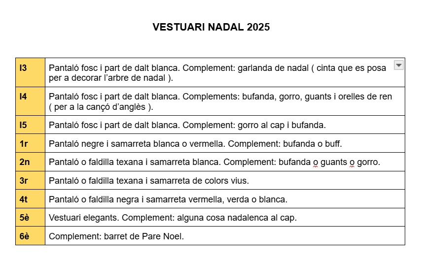 Les vacances de Nadal seran del 22 de desembre de 2025 fins el dia 7 de gener de 2026, ambdós inclosos.