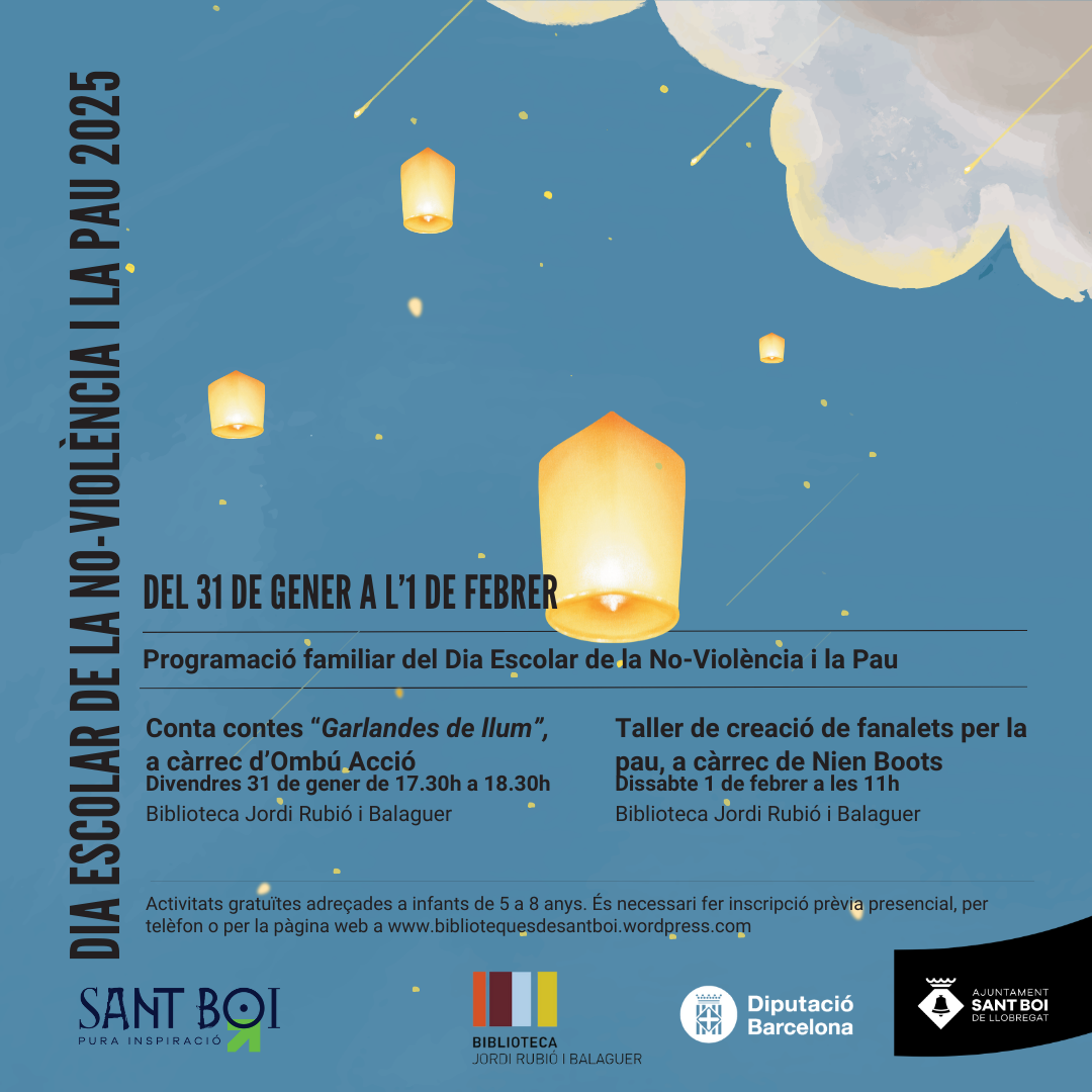 Des de la Unitat de Cooperació, Solidaritat i Pau i amb motiu de la celebració del Dia Escolar de la No-Violència i la Pau (DENIP), que tindrà lloc el proper 30 de gener, hem organitzat dues activitats familiars a la Biblioteca Jordi Rubió i Balaguer: