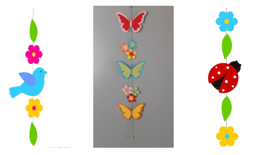Per tal de decorar els passadissos, els vostres fills i filles porten en paper unes propostes mòbils per què a casa puguin decorar-les i personalitzar-les amb motius florals, de primavera, Sant Jordi…