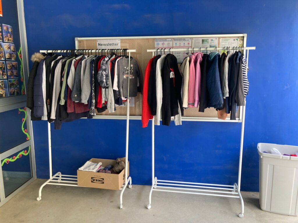 Hem penjat la roba trobada a l’entrada de la porta de Primària. Si trobeu a faltar alguna peça de roba, entreu amb llibertat i mireu si trobeu la vostra. Hi ha molts bufs, jaquetes, dessuadores, samarretes…