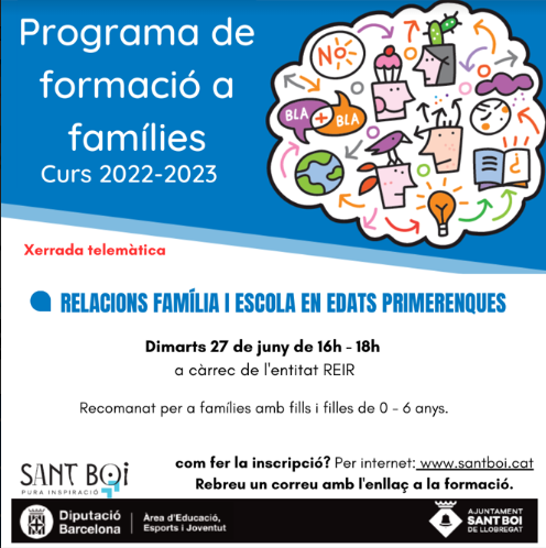 La primera a les 9:45h adreçada a les famílies que tenen fill/es a Infantil i a Infantil i Primària, i la segona, a les 11:45h, adreçada a les famílies amb fills/es només a Primària.