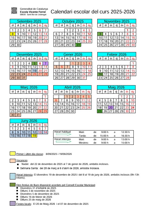 Adjuntem el calendari modificat. El trobareu també a la pàgina web de l’escola.