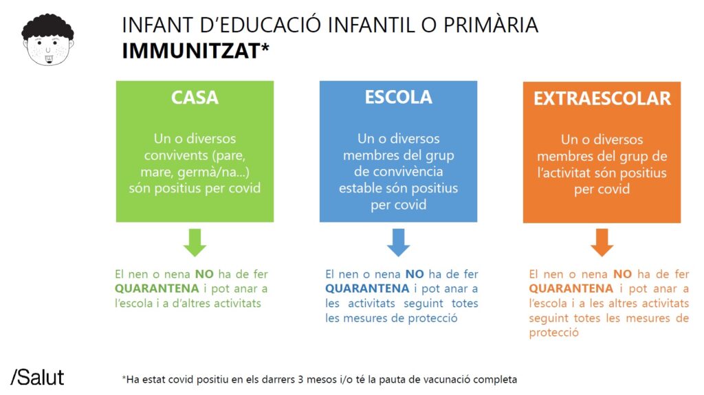 - Alumnes immunitzats (Covid els darrers 3 mesos) no fan quarantena a no ser que tinguin símptomes.
