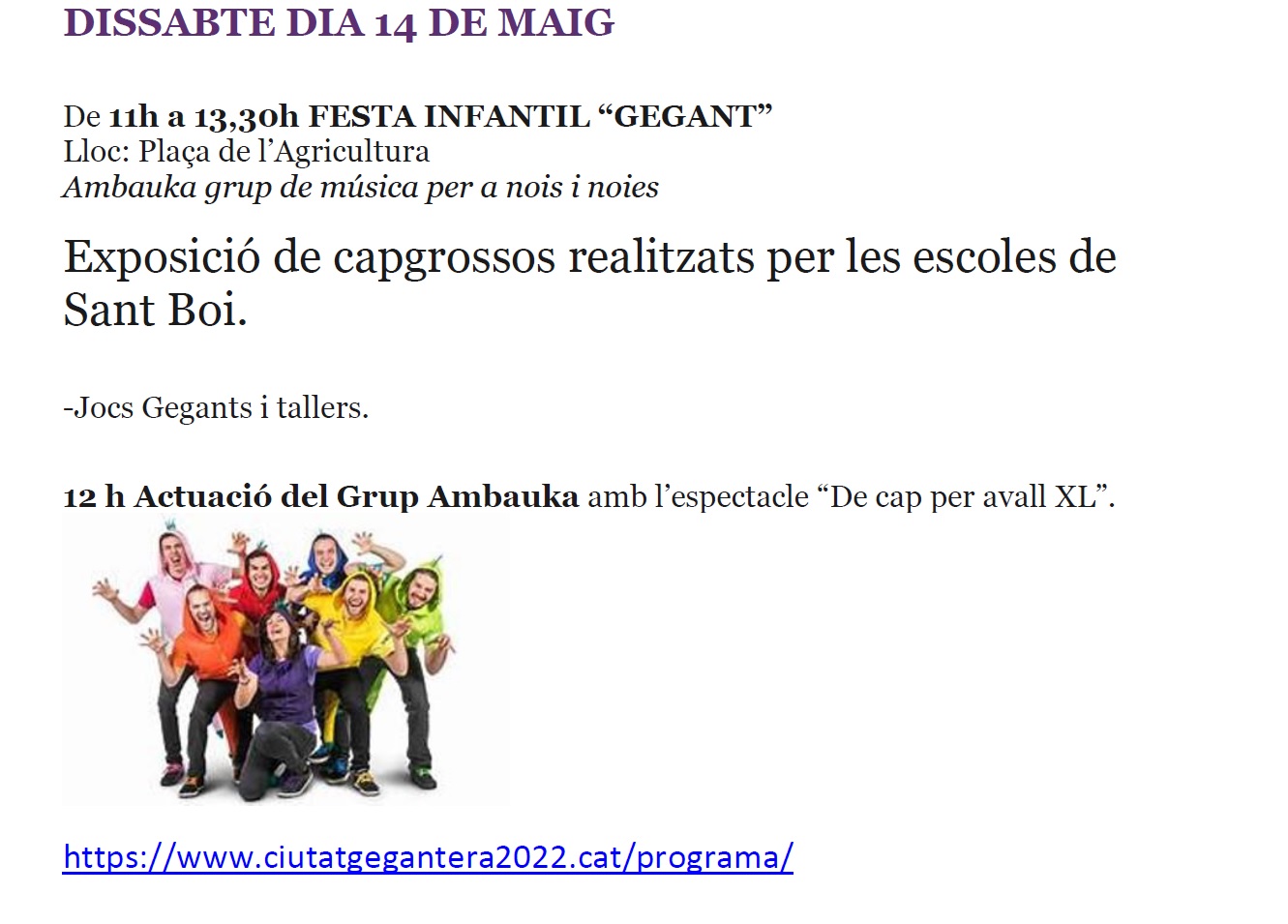 Us recordem que el divendres 20 de maig és festiu a Sant Boi (Festa Major).