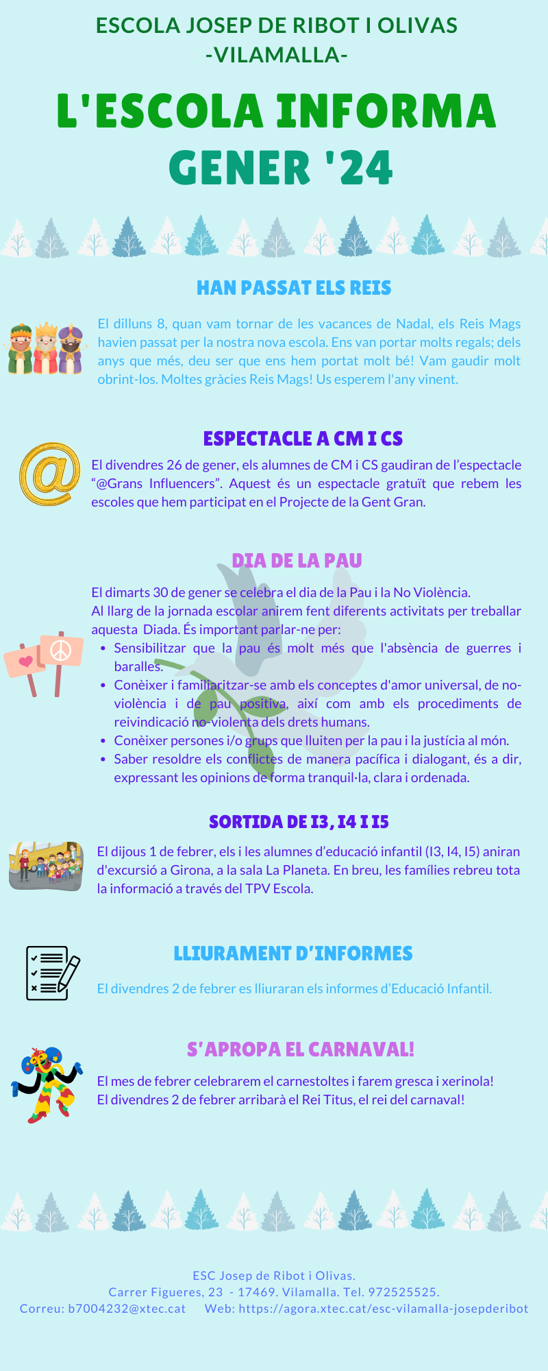 1r 2n 3r 4t 5è 6è Activitats escola AFA AMPA carnaval COVID19 dictat Educació Física English francès I1 I2 I3 I4 I5 IN Infantil Llenguatge Matemàtiques medi Menjador escolar Música nadal P1 P2 P3 P4 P5 Pati Plàstica Primàra Primària Projectes robòtica Salut escola Sant Jordi Sortides Àmbit digital
