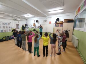 Durant aquest 3r trimestre, des de l’àrea de música, estem treballant els continguts referents a la veu i la cançó. Gràcies al cant, tenim cura de mantenir una postura corporal adequada, aprenem a respectar les interpretacions dels altres, valorem la pròpia veu, gaudim del cant col·lectiu, i sobretot, despertem l’atenció, l’interès i la participació de l’alumnat amb propostes properes i vivencials:
