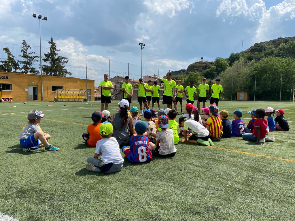 Els nens i nenes de P5 passem una tarda divertida fent activitats de futbol al C.F. Voltregà. Allà ens esperaven els entrenadors i alguns jugadors del C.F. Voltregà, ens van organitzar diferents jocs de futbol on tots i totes vam gaudir molt. Per fer passar una mica la calor ens van obrir els aspersors i així vam quedar ben refrescats i refrescades.