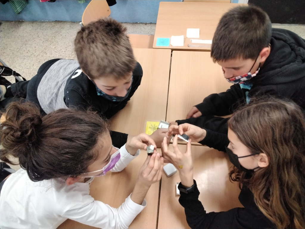 A 5è hm seguit indagant sobre fets relacionats amb geologia i geografia. En aquest cas, ens hem preguntat quins minerals hi ha i quin ús se’n fa. Per aquest motiu, ens hem posat les ulleres de geòlegs i estem indagant per saber més coses sobre aquests objectes naturals tant fascinants. Com que de minerals n’hi ha molts, n’hem fet una selecció i, per grups, estem esdevinguen experts d’un mineral concret. Ja hem anat veient que utilitzem molts minerals en el nostre dia a dia!