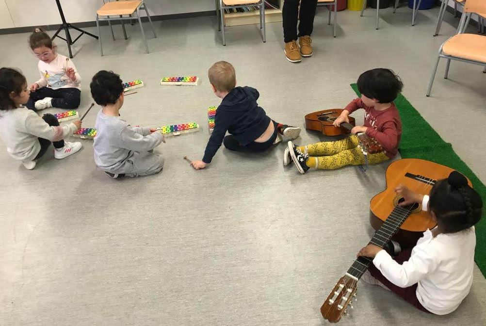 Els alumnes d’infantil han experimentat amb els sons dels pianos, boomwhackers, guitarres i carillons. Respectant l’estona que cadascú està a l’instrument i convidant-lo a provar altres instruments. Ho poden tocar en grup o solitari. Hem gaudit de la música!