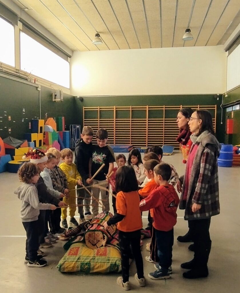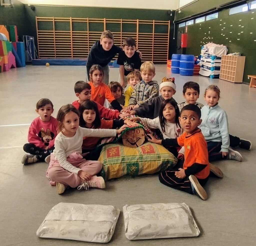 Fa uns dies, ens vam trobar al Tió, amagat al pati de l’escola, tremolant de fred i mort de gana. El vam portar de seguida a dintre de l’escola per tapar-lo amb una manta que ens van teixir el grup de dones de Salou. Venia d’un lloc on feia fred i hi havia poc menjar. Volia quedar-se amb nosaltres una temporada. Hem estat encantats que hagis estat amb nosaltres!!! Cada dia li hem portat menjar: peles de diferents fruites com ara mandarina, plàtan… i s’ha fet gran i fort. Com s’ha alimentat molt bé, el tió és molt agraït i, abans de tornar a casa seva, ens han cagat molts regals.