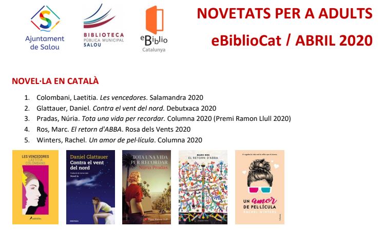 Des de la BIblioteca Pública Municipal de Salou ens arriben les novetats infantils i d’adults del mes d’abril.