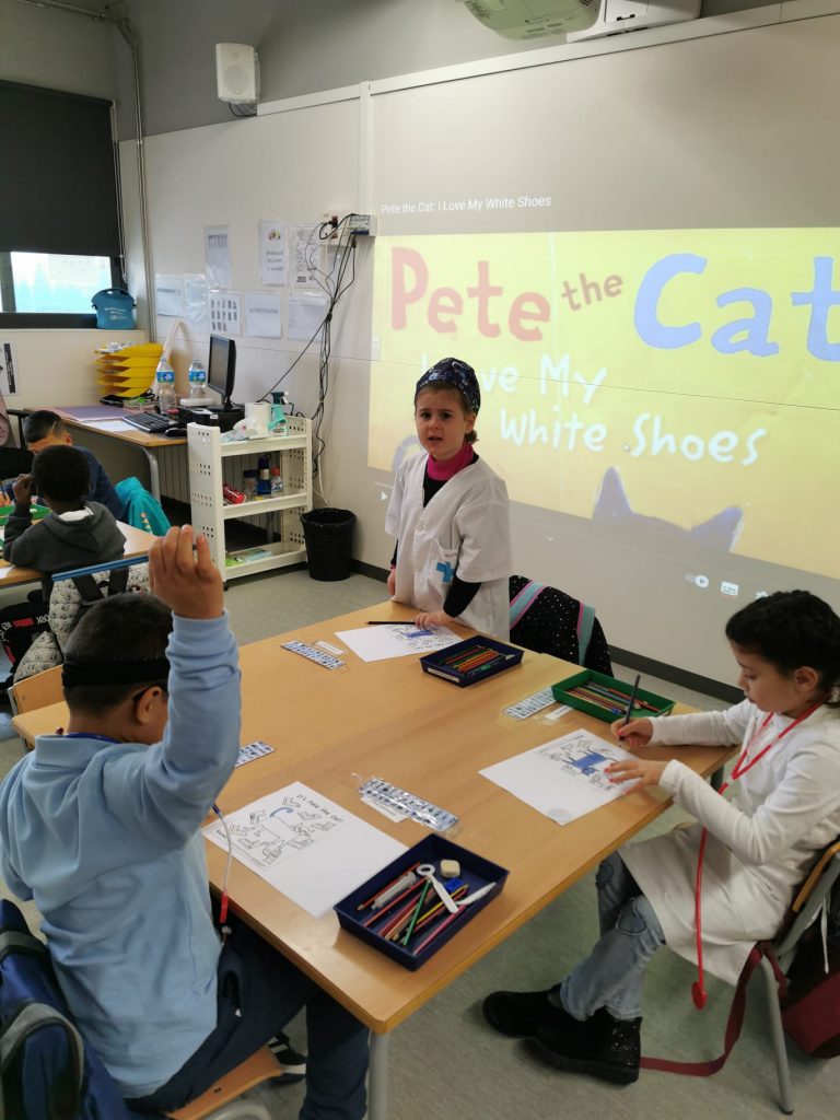 Aquí en tenim una mostra: el conte de Pete the Cat, a p5 i el recull de contes de la Peggy, a P3.