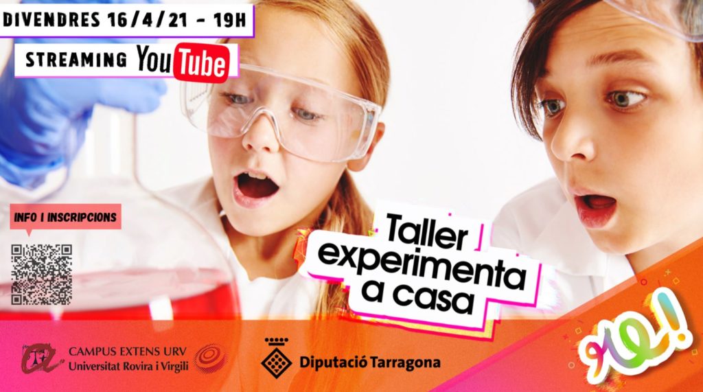 Enllaç a les inscripcions: https://enquestes.urv.cat/s3/Inscripci-Tallers-Experimenta-a-casa-en-streaming (els inscrits rebem automàticament un e-mail en fer la inscripció).