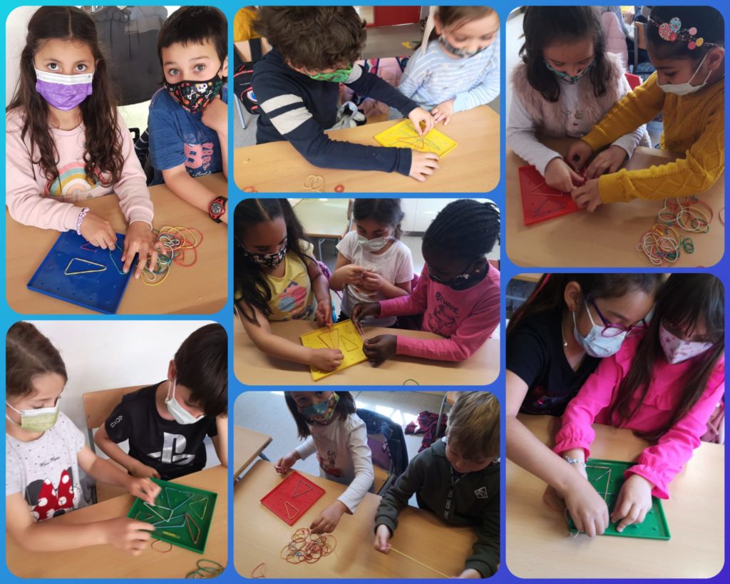 Aquestes setmanes els nens i nenes de 1r hem treballat la geometria d’una manera manipulativa, motivadora i divertida. Hem après, jugant, les característiques de les figures planes i les hem construït de diferents maneres. Mireu!