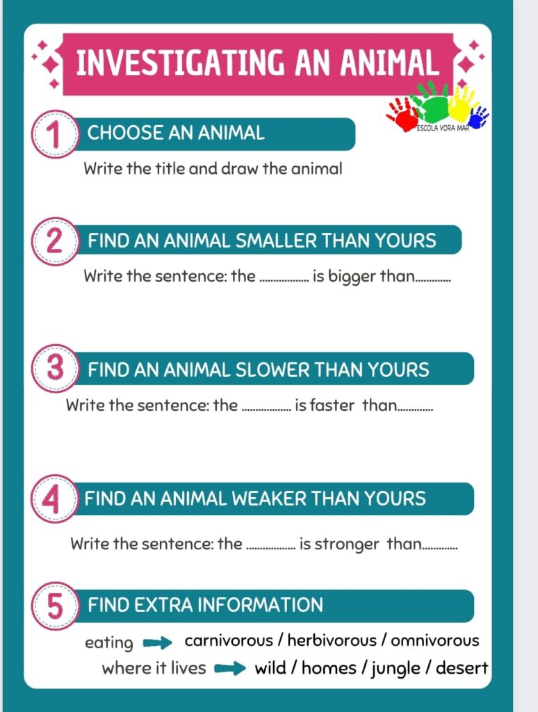 Investigating an animal in year 3 Feu un comentari / Per Escola Vora Mar / 07/02/2024 / Portada Investigating an animal in year 3. Now that we have understood how it is compared in English, we investigate an animal. Using scaffolding, we are able to create complex sentences and then expose them to others.