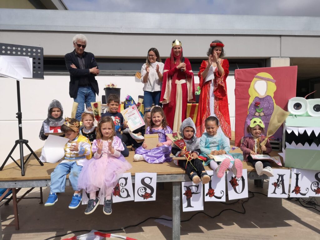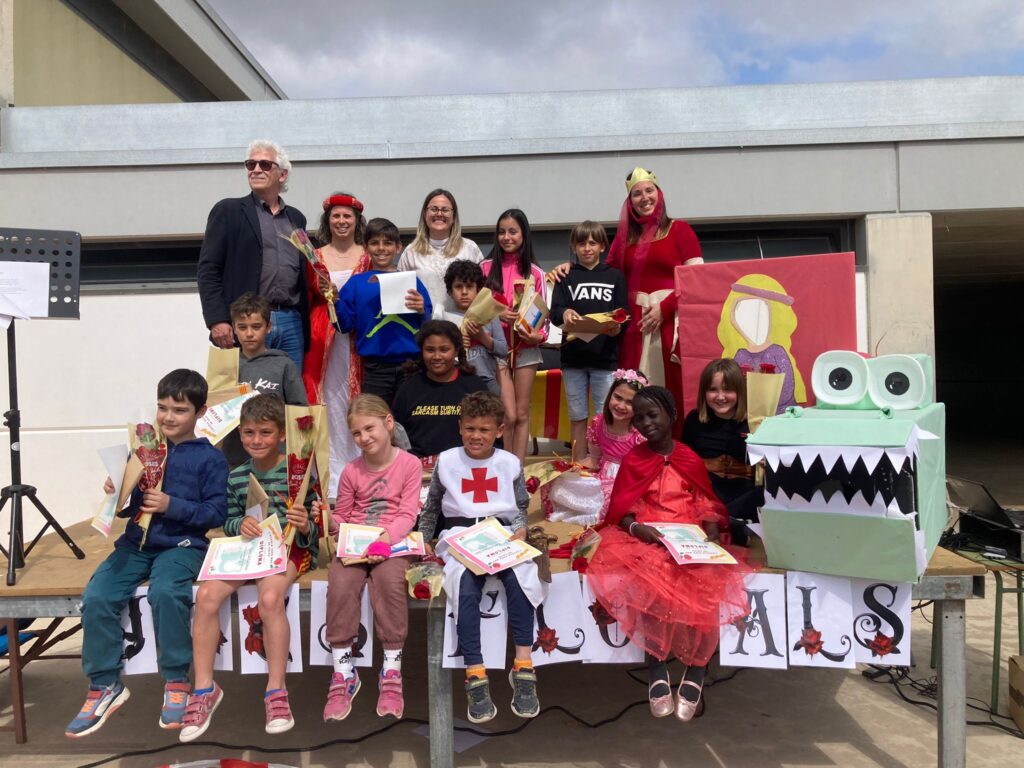 Avui divendres tot apuntava a ser un dia corrent i molent com qualsevol altre, menys per un fet amb molta significança… Hem celebrat a l’escola el dia de Sant Jordi. Al matí, les diverses classes de l’escola ens hem organitzat per torns per tal d’anar a visitar les “paradetes” de llibres i roses. A la tarda, hem celebrat els Jocs Florals de l’escola Vora Mar, i no se’ns va ocórrer millor idea que convidar a l’escriptor i inspector d’Educació Carles Jardí, que acompanyat per Sant Jordi, la princesa, i l’il·lustríssim drac, ens ha recitat uns bellíssims poemes i després hem atorgat els premis als guanyadors i guanyadores del concurs de literatura. Enhorabona! Continueu escrivint les vostres històries i les vostres emocions.