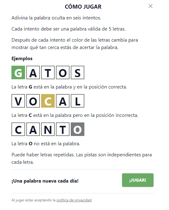 Des de 6è C us volem proposar un joc molt saludable i entretingut, LA PALABRA. Consisteix en endevinar una paraula cada dia. És súper divertit, a més a més de què implica pensar, inferir i treballar vocabulari. Com funciona? Has de trobar la paraula, de 5 lletres que es poden repetir. Si la posició de la lletra és correcta sortirà de color verd, sinó de color groc i sinó hi és, sortirà de color gris… Hi tens 6 oportunitats!! Proveu-ho!! Cada dia és una paraula diferent, no més cal clicar, això sí, és en castellà.
