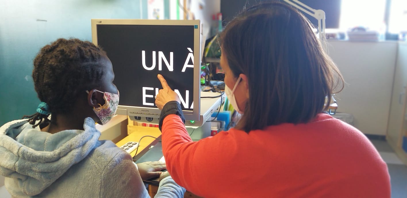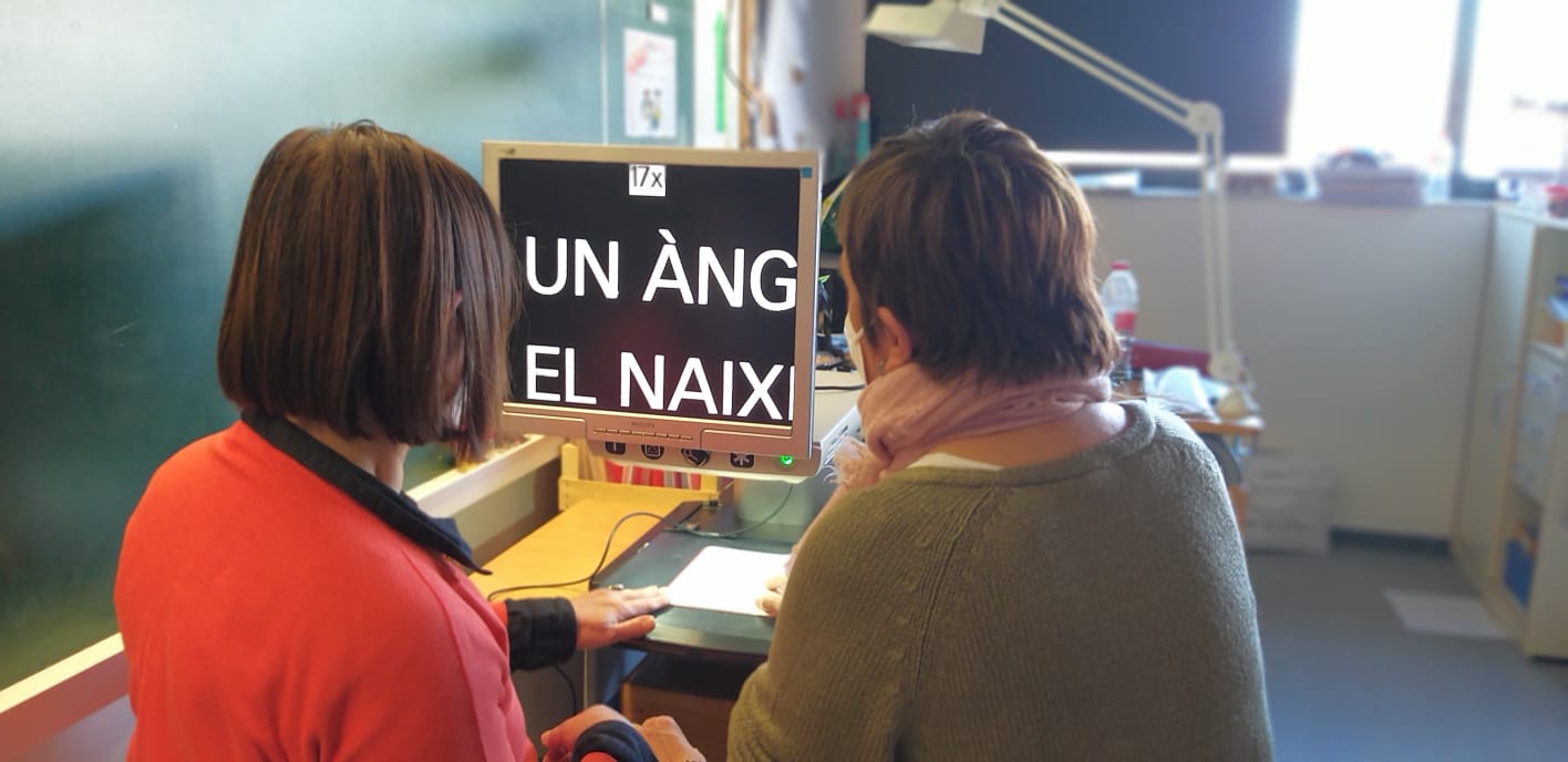 Material CREDV-ONCE Feu un comentari / Per Escola Vora Mar / 17/02/2022 / Portada Avui, les professionals del CREDV-ONCE han vingut a instal·lar una lupa-televisió que permetrà a la nostra alumna accedir amb més facilitat i autonomia treballar els textos escrits.