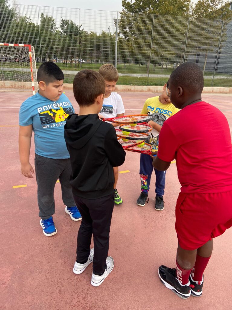Hem treballat jocs cooperatius de tennis.Hem practicat cops de tennis i jugat partits.