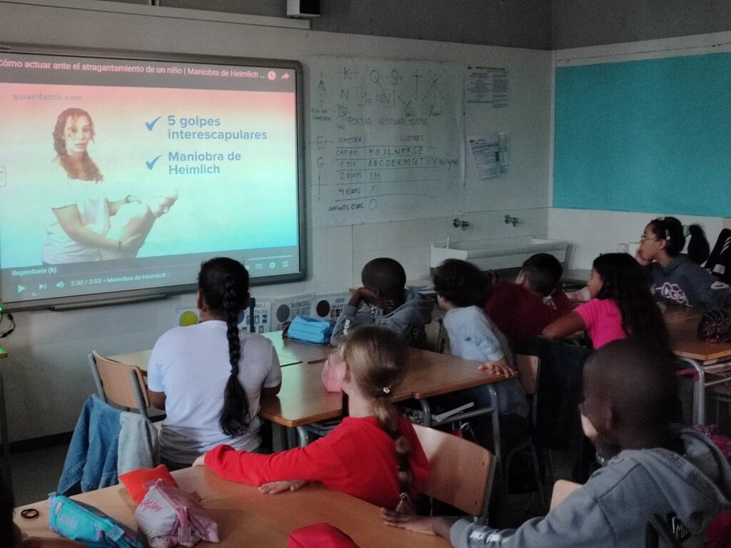 Aquesta setmana l’alumnat de 4t ha fet la primera sessió de Suport Vital Bàsic. Han aprés els passos a seguir abans de trucar al 112 en la cadena de Suport Vital, així com la seva importància i els principals contratemps que es poden trobar en cada fase.