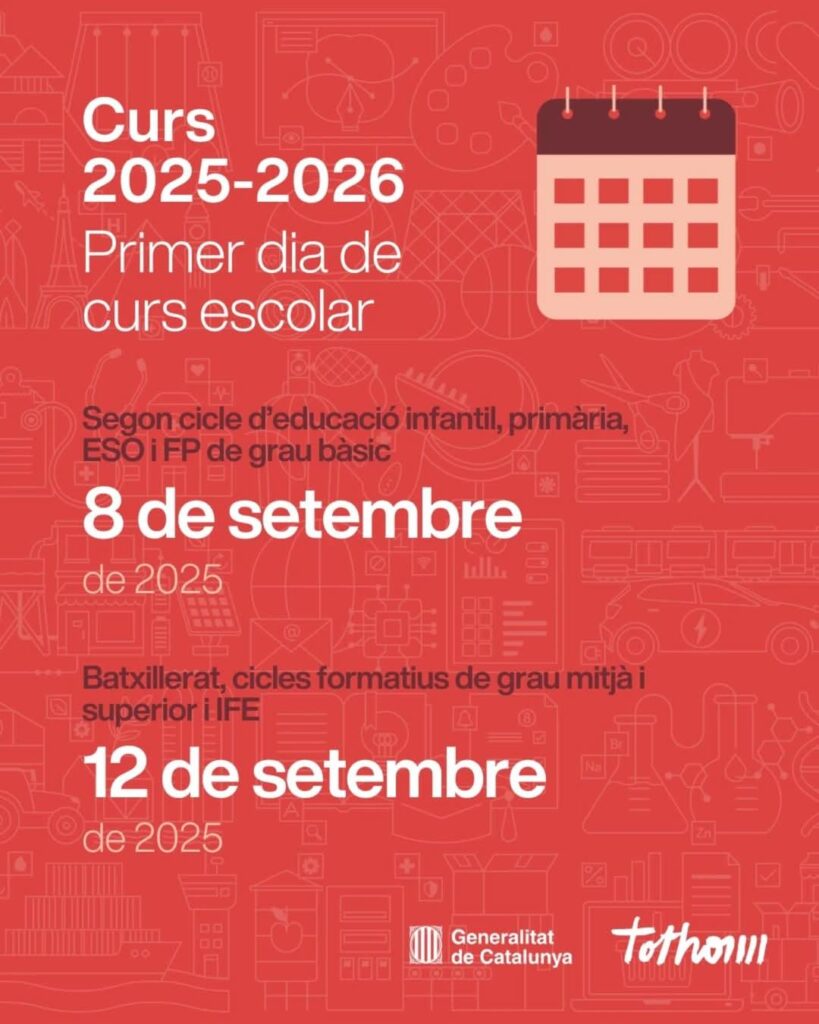 DATES CLAU El curs escolar 2025-2026 començarà el dilluns 8 de setembre per als ensenyaments de segon cicle d’ educació