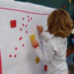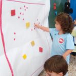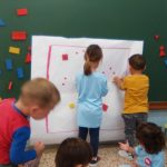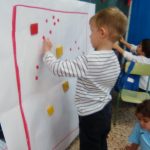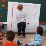 El quadrat, primera forma geomètrica treballada a l’escola. I perquè el quadrat? Doncs, el moment de cantar i ballar ens ha donat peu a conèixe’l. Hi ha una cançó molt divertida anomenada “El cuadrado” on surt Bob Esponja i analitzant aquest personatge ens hem adonat que el seu cos té aquesta forma.