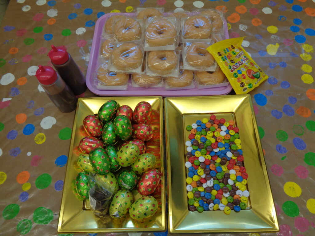 Amb l’arribada de la Pasqua vam aprofitar per experimentar amb xocolata… Una experiència molt divertida i engrescadora que ens va encantar! El vam poder olorar, tastar i tocar. I vam aprofitar per pintar amb ell i fer un mural gegant. Us deixem unes fotos: P3A P3B Després vam fer la nostra mona: un donut, un
