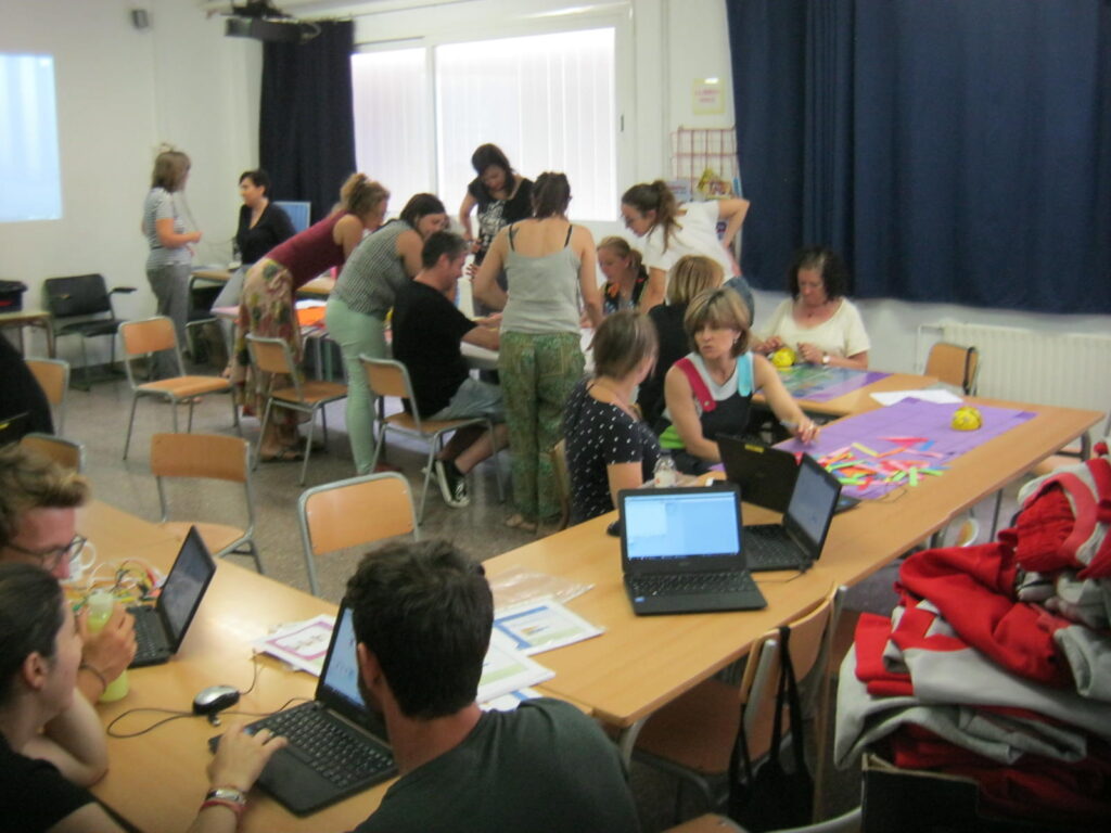 Dimecres dia 13 de juny ha tingut lloc a l’escola una trobada entre tots els mestres per tal de compartir els diferents projectes de robòtica que s’estan duent a terme en les estones de tallers als diferents cicles. Aquesta trobada ha servit per conèixer les activitats que s’estan duent a terme, la manera de treballar dels