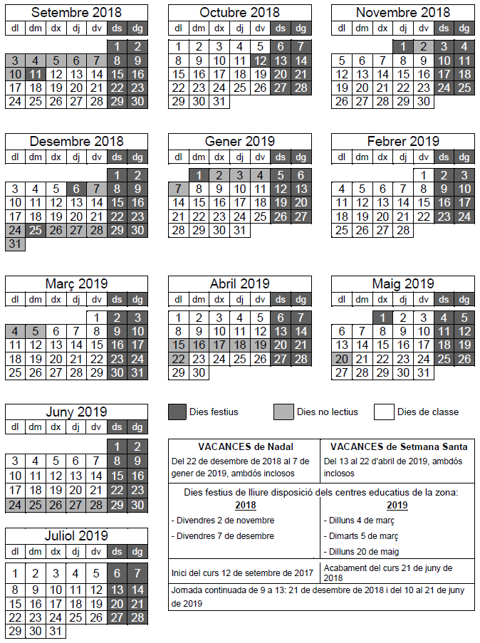 Calendari escolar del curs 2018-2019 Llegeix més »