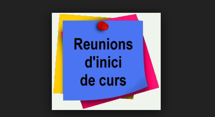 Us informem del calendari de reunions d’inici de curs dels diferents cursos. És important l’assistència a aquestes reunions ja que s’hi tracten temes i es transmeten una sèrie d’informacions sobre el funcionament de l’escola, de l’aula i del procés d’aprenentatge de l’alumnat. Totes les reunions seran a les 3 de la tarda i tindran lloc
