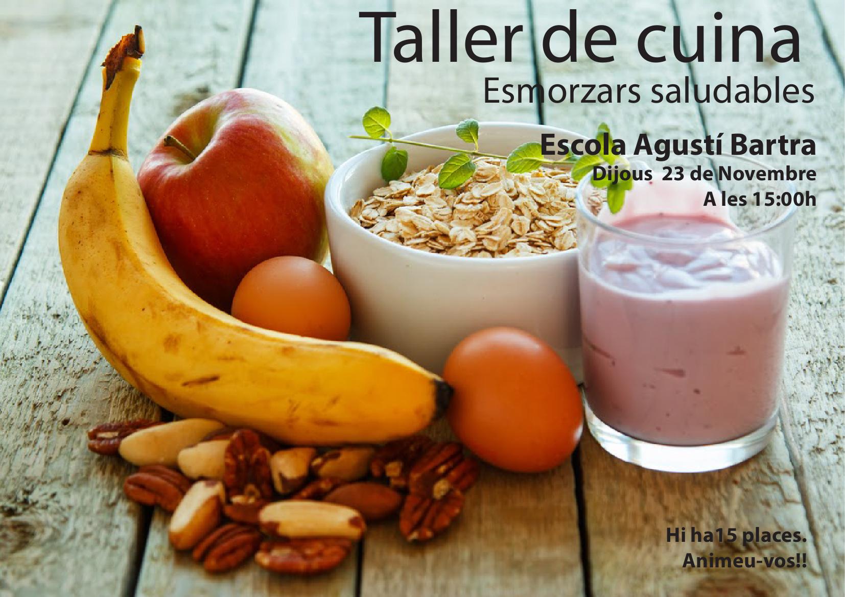 El proper dijous 23 de novembre a les 3 de la tarda tindrà lloc a l’escola un taller de cuina per tractar el tema dels esmorzars saludables.