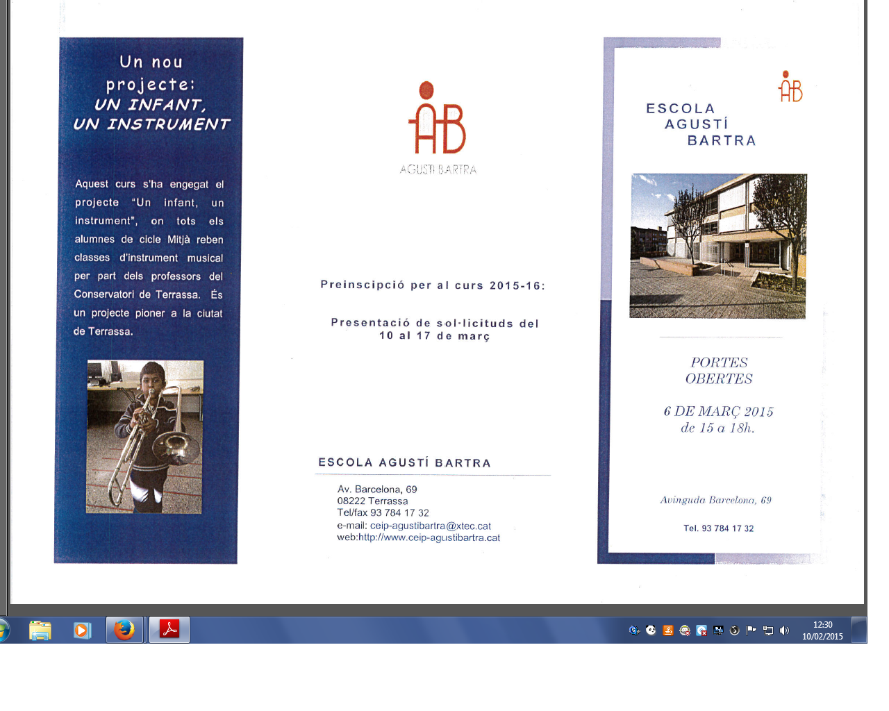 EL PROPER DIVENDRES 6 DE MARÇ L’ESCOLA REALITZARÀ LA JORNADA DE PORTES OBERTES! PODREU VISITAR L’ESCOLA DE 15 A 18 DE LA TARDA! US ESPEREM!! Triptic portes obertes curs 15-16
