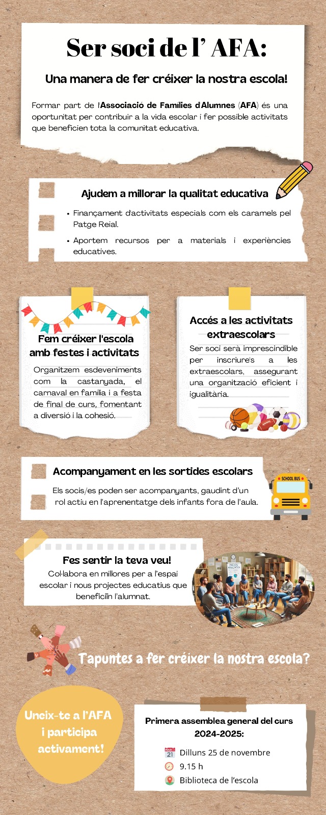 Durant el curs 2024/2025 l’escola participa novament en el programa de fruites i hortalisses. Aquest programa inclou un total de 6 entregues al llarg del curs, amb la primera programada entre l’11 i el 26 de novembre. Les entregues es realitzen mitjançant l’Associació Empresarial de Fruita de Catalunya (AFRUCAT). Tot l’alumnat del centre, tant d’infantil […]