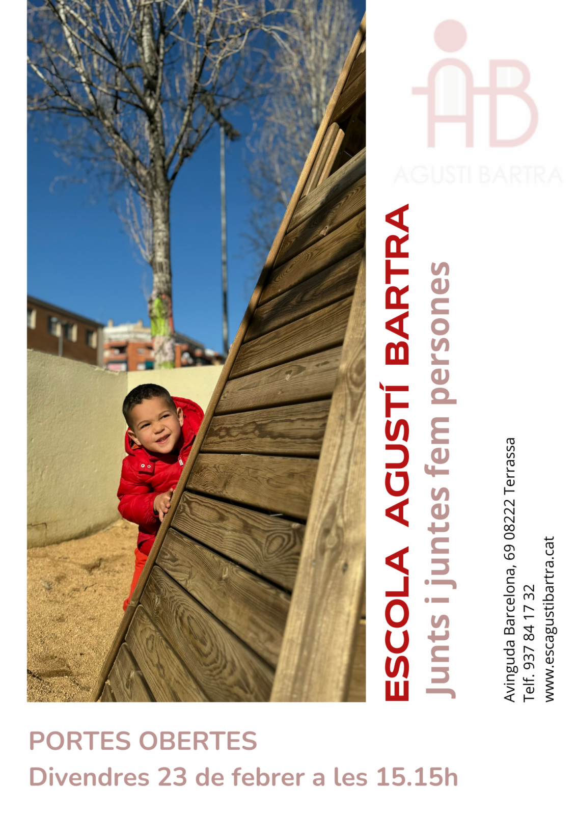 Jornada de portes obertes Dia: divendres 23 de febrer Hora: inici a les 15.15h Cal trucar per demanar cita prèvia al telèfon del centre 937 84 17 32 https://www.escagustibartra.cat/ @escagustibartra Període de preinscripció per al curs 2024-2025 Educació infantil (de 3 a 6 anys) i educació primària (de 6 a 12 anys) Dia: del 6 […]