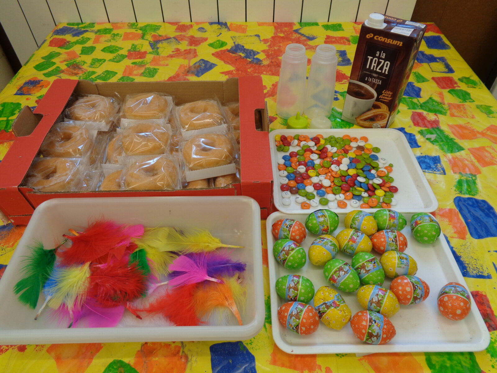Benvolgudes famílies! Aquesta setmana ha estat molt divertida, dimecres i dijous vam experimentar amb xocolata. P3-A Elmer P3-B Cabretes El divendres hem fet la nostra pròpia mona amb un donut, xocolata desfeta, lacasitos i un ou de xocolata! Després les hem decorat amb plomes i ens les hem menjat per esmorzar! Hem gaudit […]