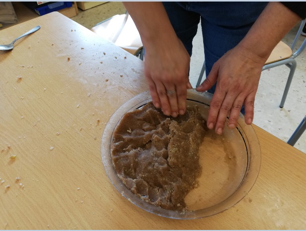 Dimarts al matí vam preparar la massa dels panellets amb 4 famílies que van venir a donar-nos un cop de mà. Dimecres, quan la massa ja havia reposat, vam elaborar els panellets. Els vam fer d’ametlla picada, de coco, de cacau i de cireres confitades. Aquest cop també vam requerir l’ajuda de 4 famílies voluntàries que a més ens van fer el favor de coure’ls a casa.