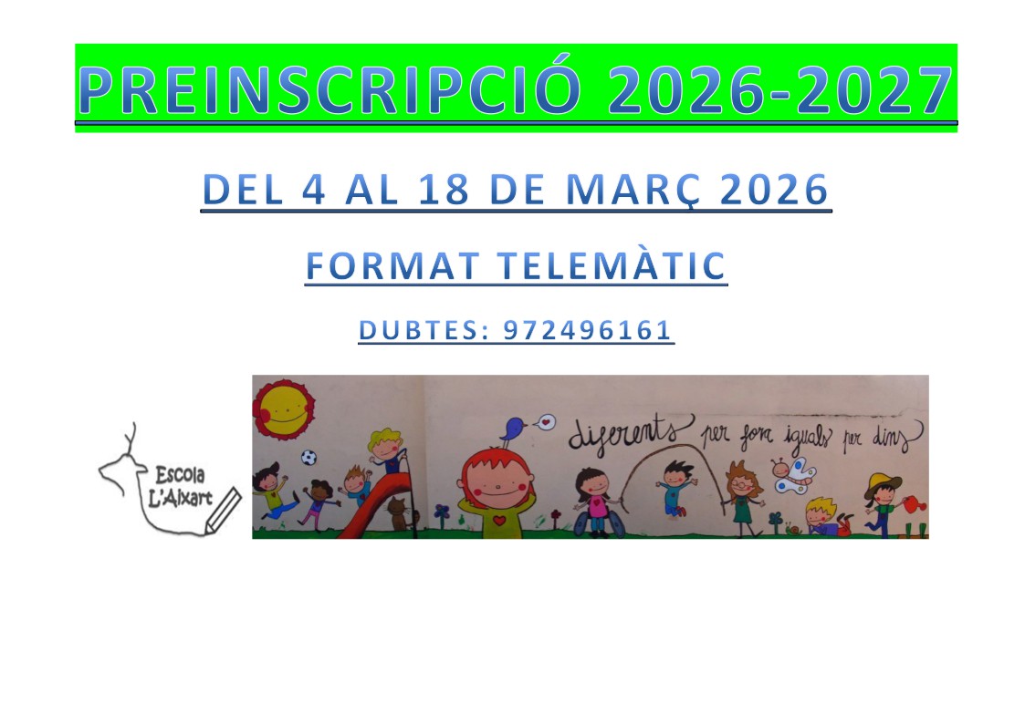 Ja arriba la Fira solidària de L’Aixart! Aquest curs els nens i nenes de l’escola han preparat una gran varietat d’articles nadalencs per alegrar les vostres festes. Els beneficis de la fira d’aquest any aniran a “Pequeño deseo”, una fundació que ajuda a complir els desitjos d’infants i adolescents amb malalties greus. Serà el divendres, […]