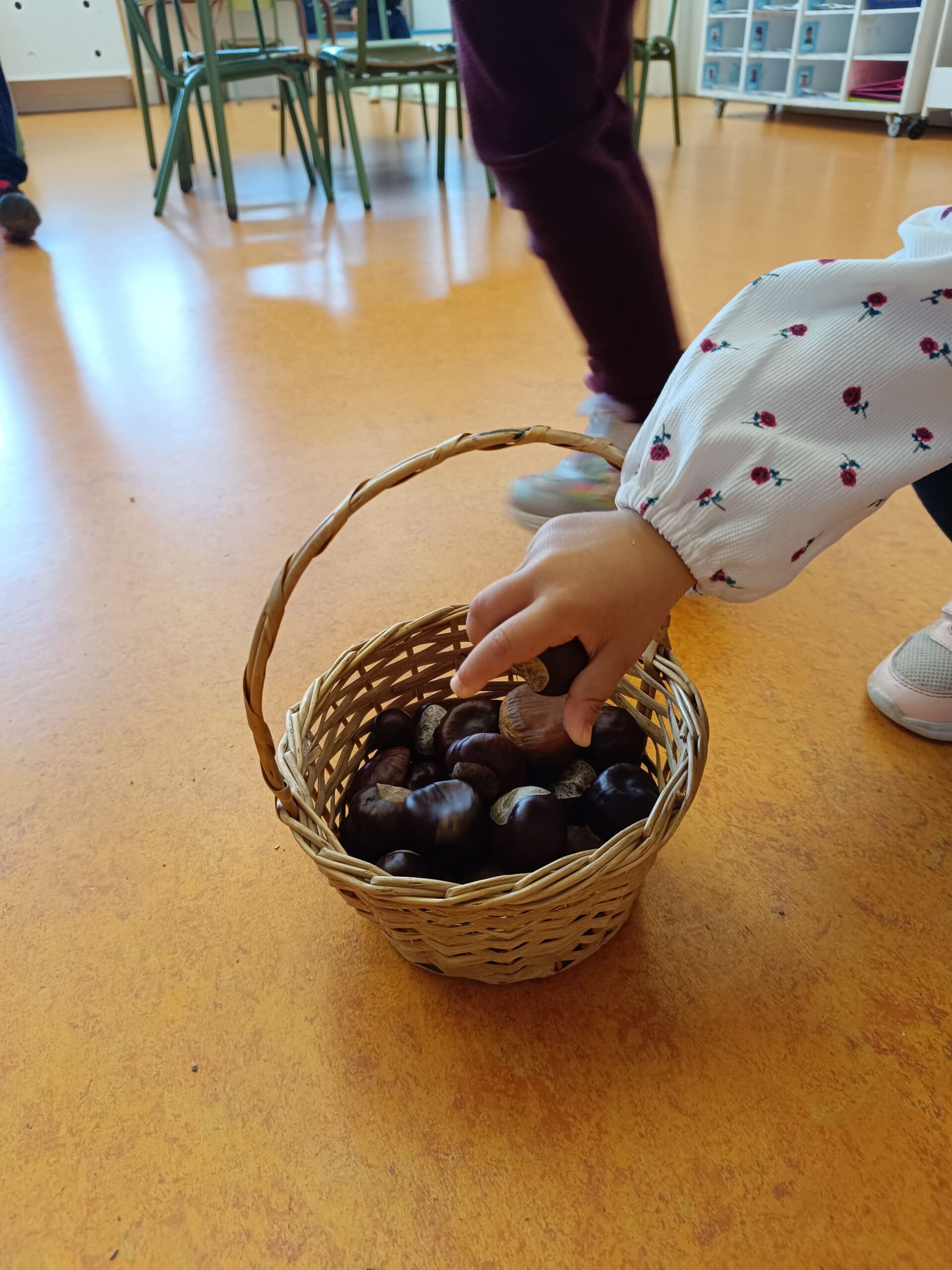 • Escoltar el conte de la Castanyera i buscar castanyes amagades per la classe, un moment ple de sorpresa i emoció que els va fer somriure i compartir la seva alegria amb els companys.