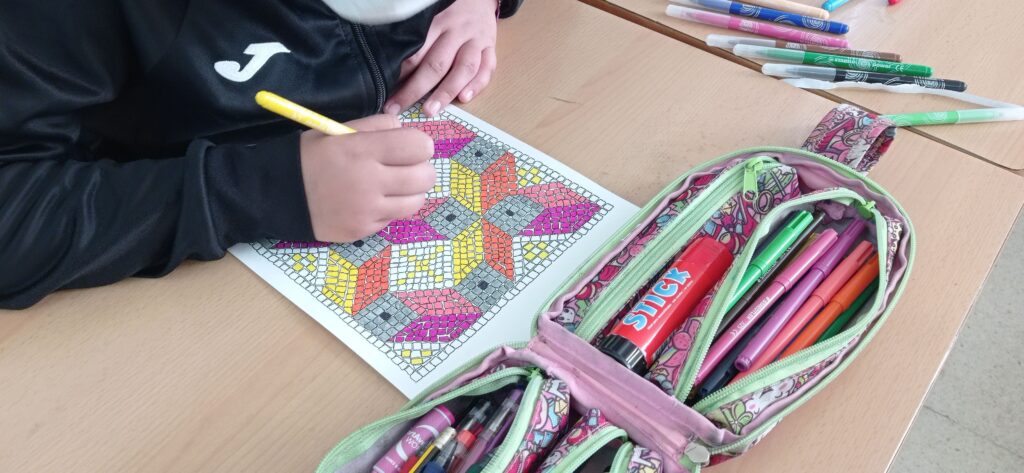 Ara, ens hem aturat en el treball d’en Dalí. Estem a Medi Social amb l’Imperi Romà, el qual treballem transversalment. Per aquest motiu, estem estudiant la tècnica del mosaic romà a educació artística. Primer, a partir d’un model propi de l’època, per després passar a fer la nostra pròpia creació. Vegeu unes fotos.