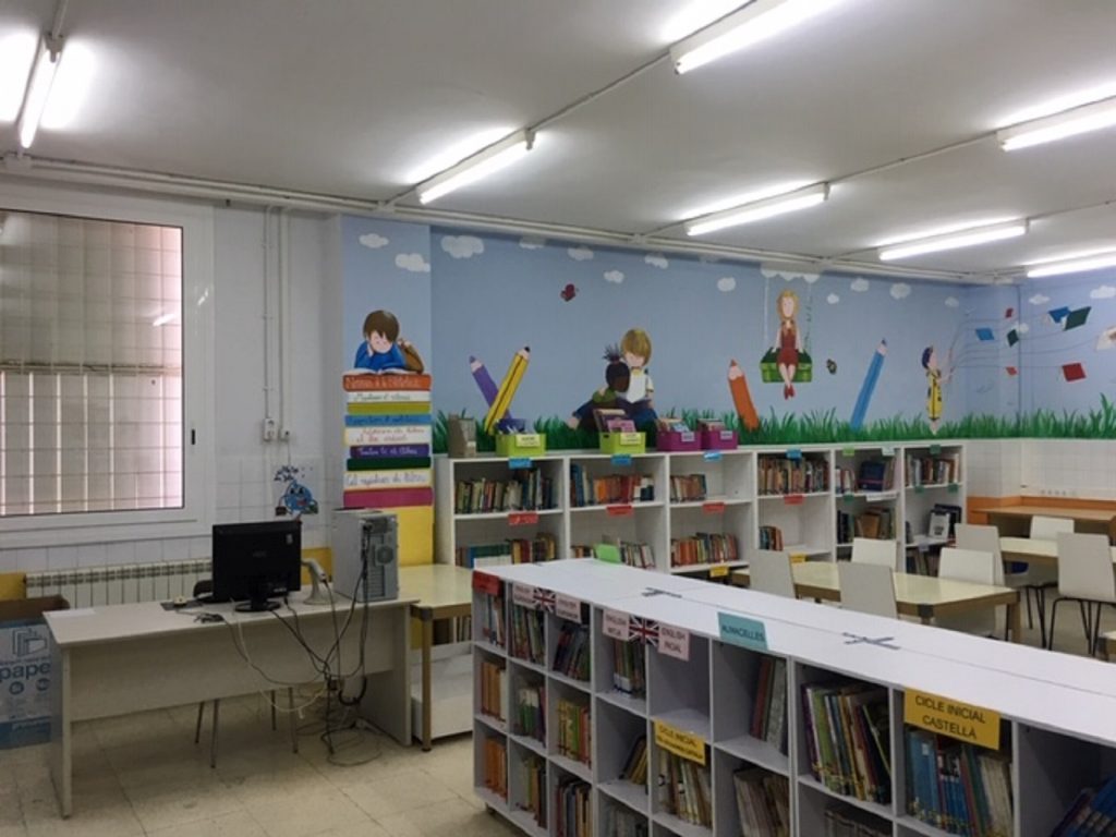 L’Ajuntament ens ha canviat les finestres i l’AMPA s’ha fet càrrec de la compra de 6 nous prestatges i de 25 cadires, així com de 2 contenidors amb 12 coixins cadascun, per a poder seure a terra a llegir.