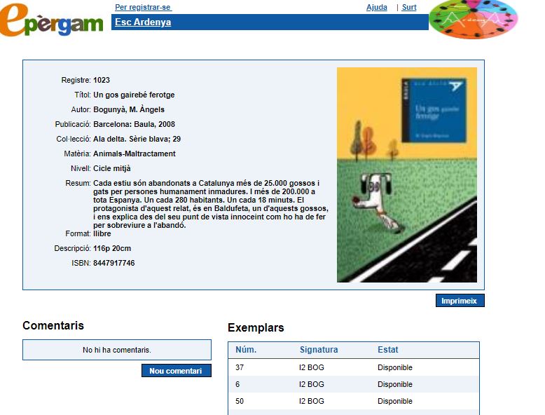 Si seleccioneu el títol del llibre que heu cercat accedireu a totes les dades que figuren en l’aplicació.