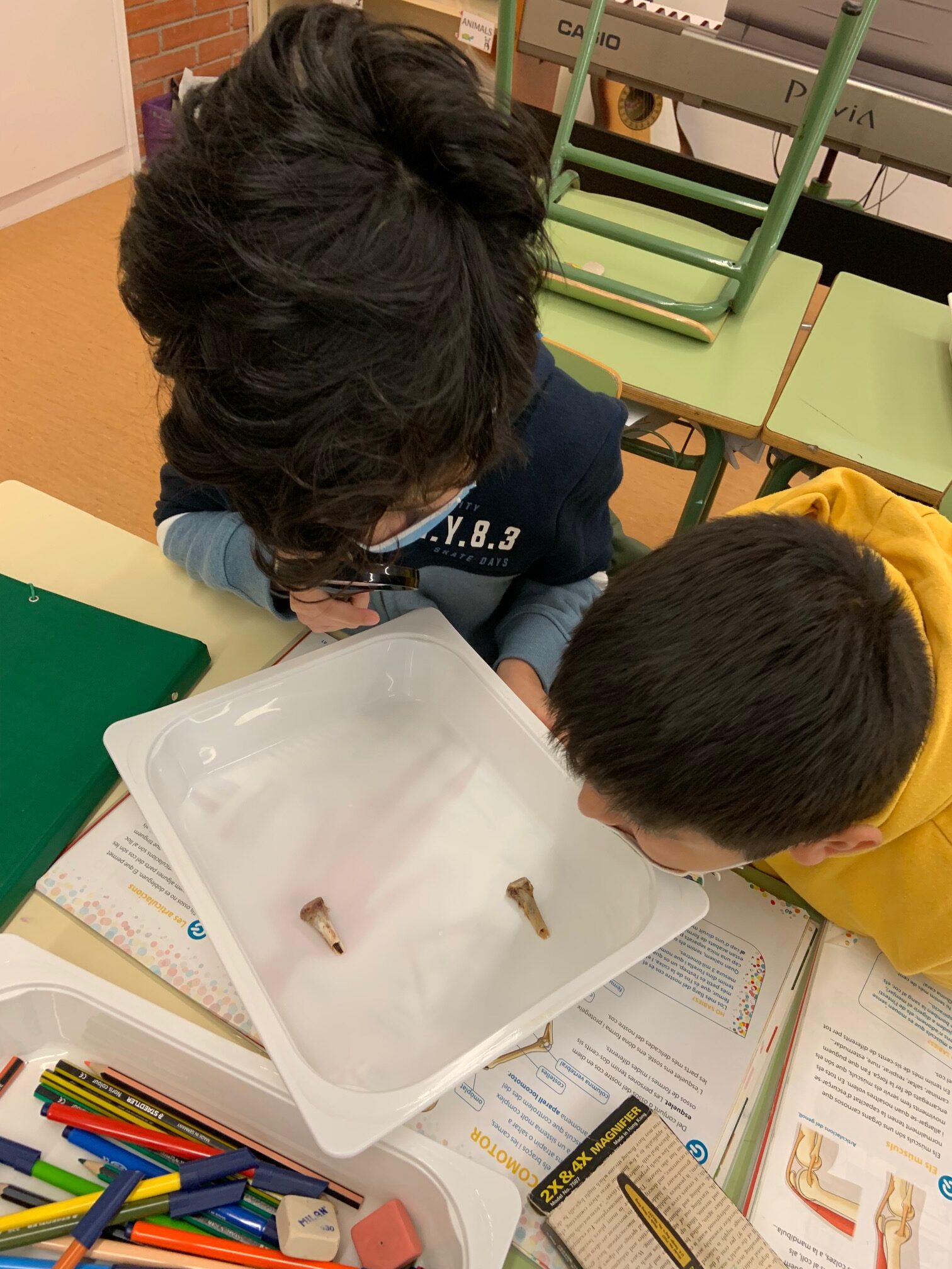 A coneixement del medi natural estem treballant les diferents etapes de la vida. Per comencçar amb el tema hem estat parlant sobre el sistema locomotor que és aquell sistema que fa que ens poguem moure. També hem après que els ossos són l’estructura del nostre cos, sense ells seríem com un slime! Ha estat increïble veure un os per dins, amb les lupes i el microscopi.