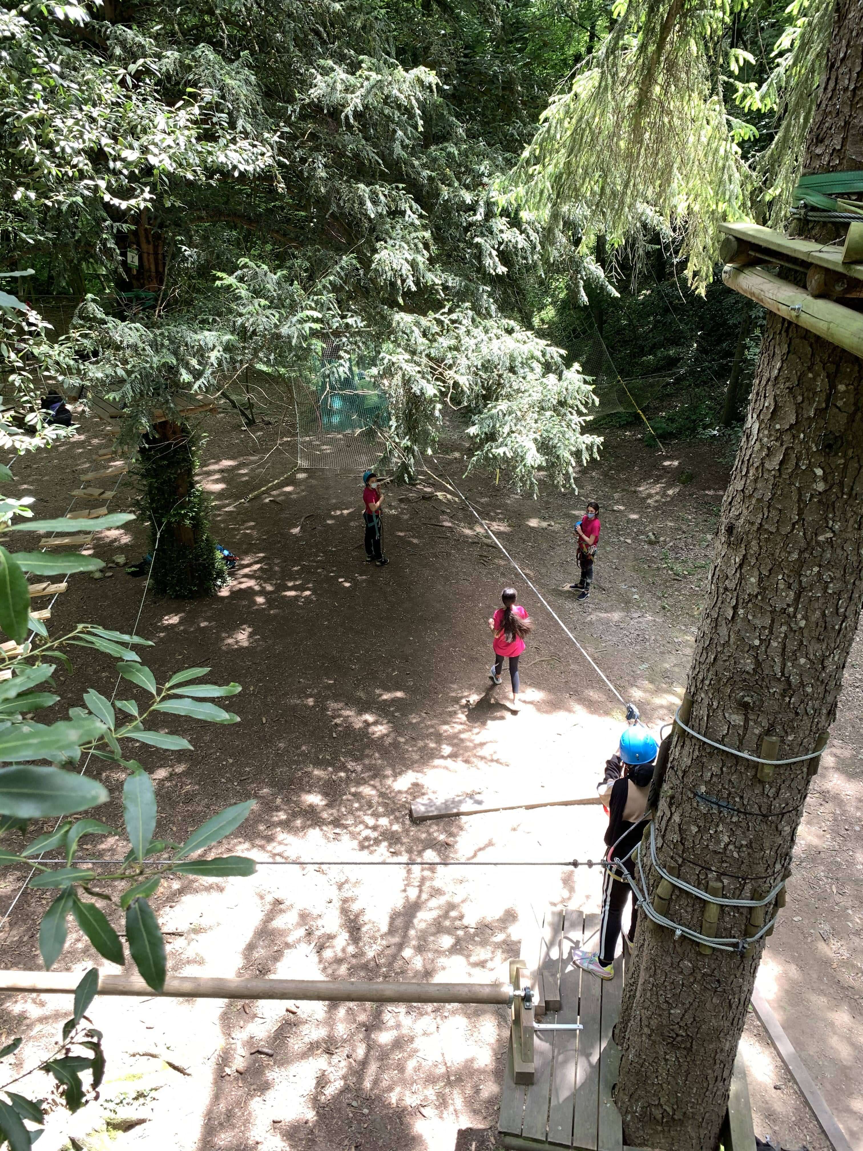 El passat 20 de maig els nens i les nenes de 6è vam anar a Mas Banyeres. Allà tenen el El bosc del cel, un circuït d’habilitats pels arbres. Primer de tot vam aprendre com assegurar-nos amb els moscatons, el més important era la seguretat! Un cop va estar tots assegurats vam trepar pels arbres, vam passar per pont i per passarel·les d’un arbre a l’altre fins a tirar-nos per la tirolina.