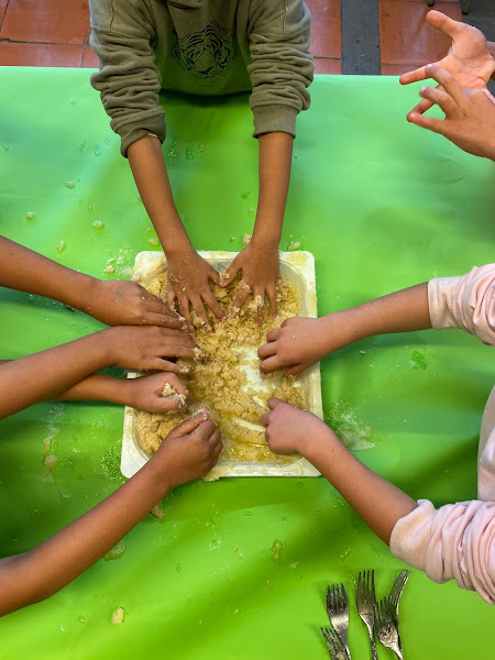 El passat 29 d’octubre vam celebrar la festa de “La castanyada” a l’escola. Al llarg de tot el matí vam estar fent els tradicionals panellets. Als més petits ens van ajudar els nostres padrins i les nostres padrines a fer-los. Van quedar d’allò més bons! A la tarda ens va visitar la Castanyera i ens va repartir castanyes per tots els nens i nenes de l’escola. Ens ho vam passar molt bé cantant i ballant!