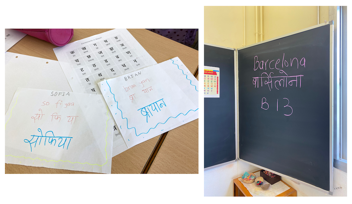 Tenim la gran sort de comptar amb recursos únics a l’aula! Aquest matí, en Santosh, pare de la Sofia, ens ha visitat per ensenyar-nos l’alfabet nepalí, una experiència que ens ha apropat a la riquesa cultural i lingüística del Nepal.