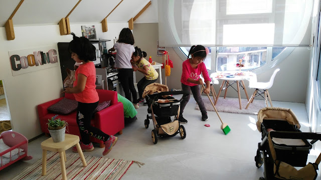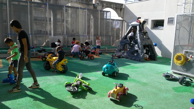 Primer hem jugat a l’espai de joc simbòlic i després hem anat a la terrasseta on hi ha motos, bicis, patins… ens ho hem passat molt i molt bé!!!