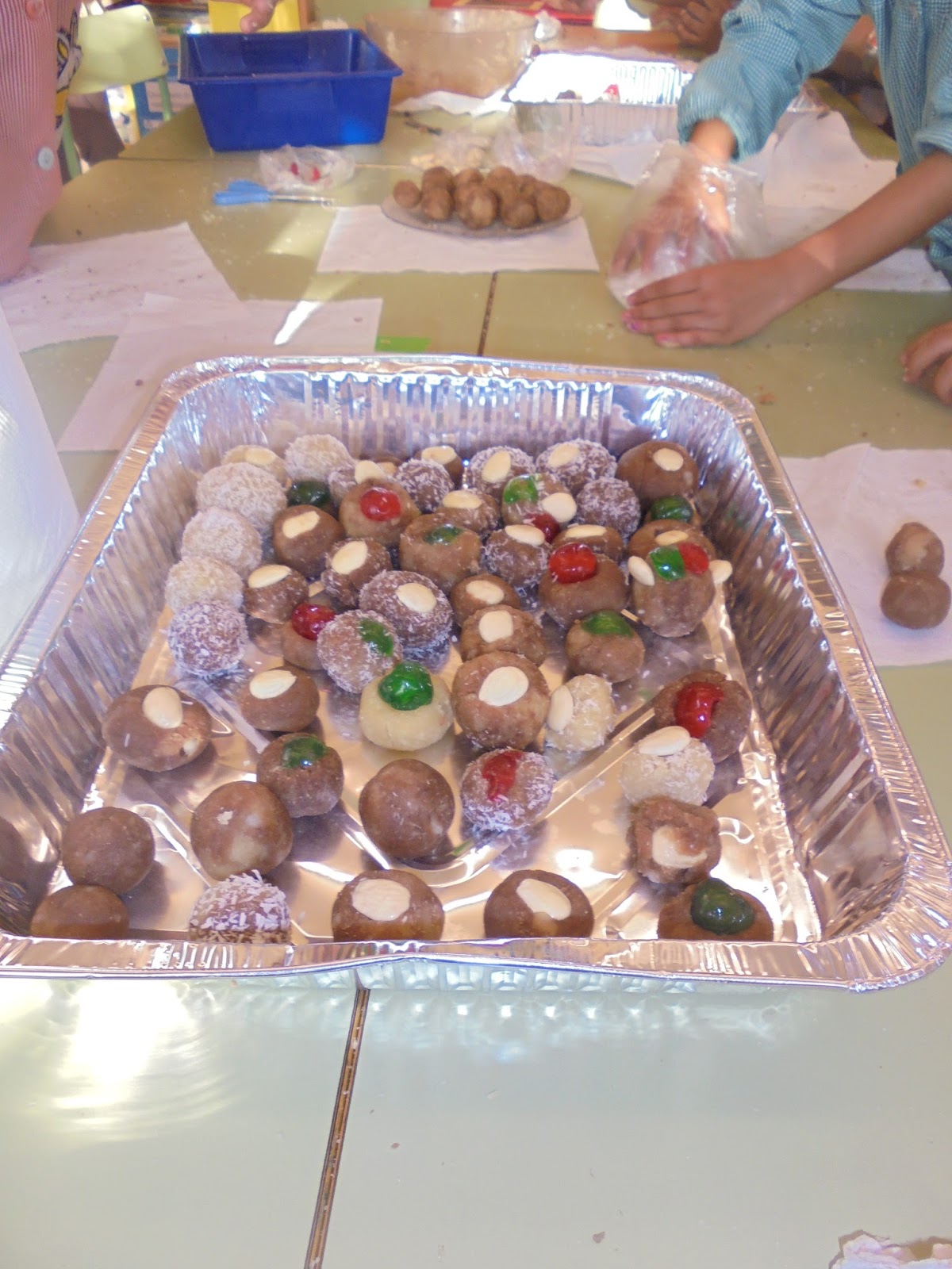 Els panellets d’infantil tenen una pinta estupenda! Però no us penseu que son els únics de l’escola que s’han apujat les mànigues… a primer, segon i tercer també hem preparat aquests dolços tan bons i com que ja som cuiners experimentats ens han quedat fantàstics 🙂
