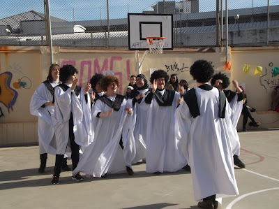 Al començament hem tingut l’exhibició de tres danses, per part de l’alumnat de cicle mitjà, cinquè i sisè. Després la lluïda desfilada per cursos, on també han participat el professorat i l’AMPA.