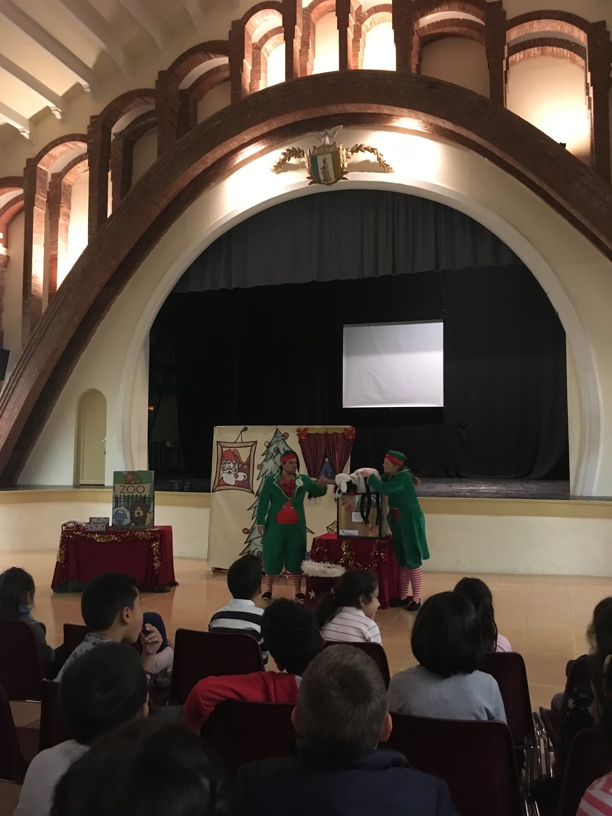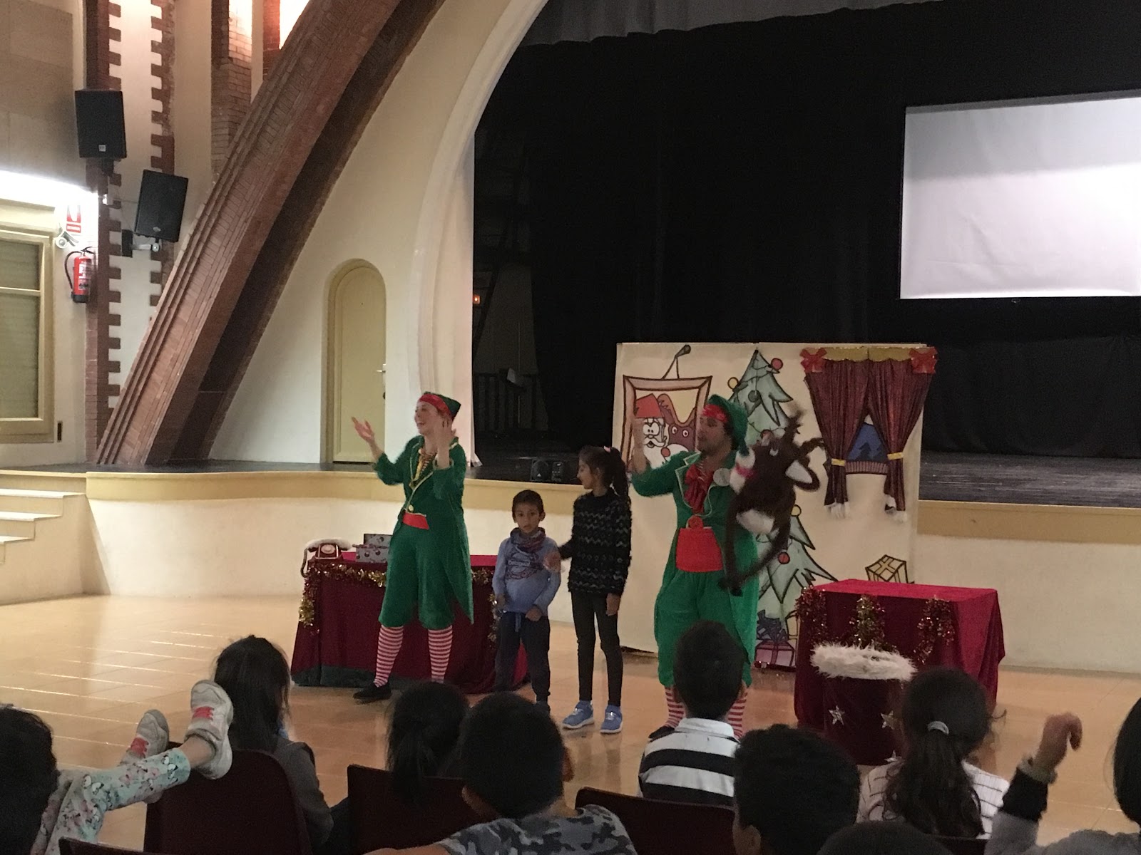 Today, children in Key Stage 1 and Key Stage 2 have watched an English play at our school theatre. Frodo and Baggins, Santa’s elves, were in trouble as Rudolph the reindeer had a flu. Nobody could help them posting the presents, ohhhh!