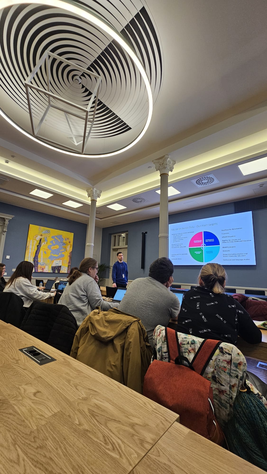 Today has been a very interesting day. We delved deep into the Finnish education system and identified the similarities and differences with our own. As a curious fact, compulsory education lasts from age 6 to 18 and is entirely free of charge (including materials, transport, meals, field trips, etc.). Their education system is built upon three fundamental values: trust, equality, and responsibility.